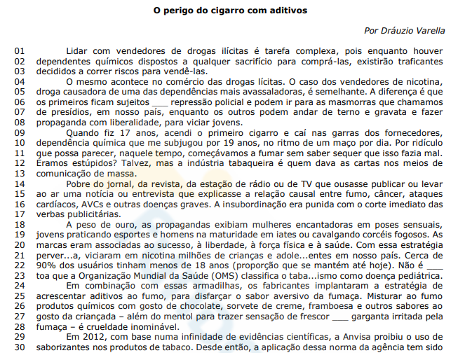 Considerando o trecho retirado do texto “as propagandas exibiam mulheres encantadoras em poses sensuais” (l.18), analise as seguintes assertivas a respeito da palavra sublinhada.