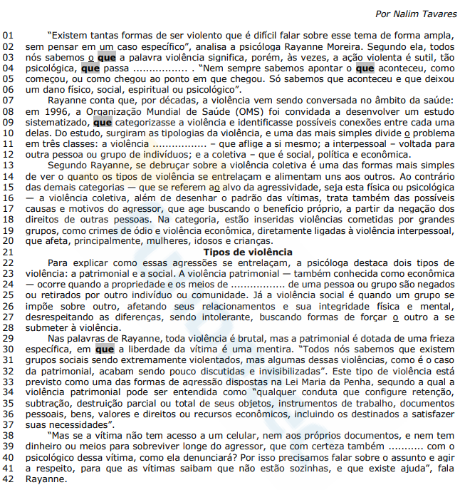 Analise as assertivas a seguir a respeito de determinadas palavras do texto: