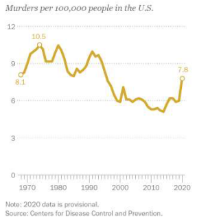 II. Despite the increase in the nation’s murder rate in 2020, it remained well below past highs in the 70’s, 80’s and 90’s.