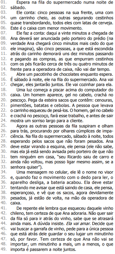 II - O pronome ele (l.16) se refere ao personagem central do texto.