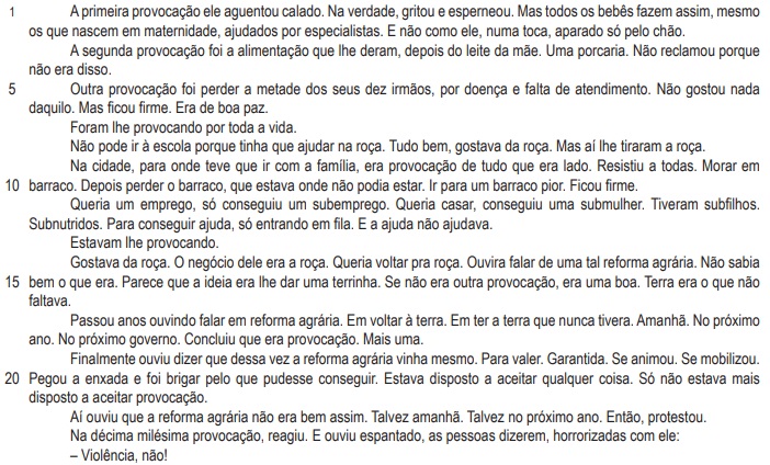 No trecho “Em ter a terra que nunca tivera”, o verbo destacado está no