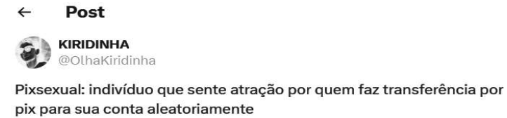 Em indivíduo que sente atração por quem faz transferência por pix para sua conta aleatoriamente, o termo sublinhado, do ponto de vista textual e no contexto em que é empregado, embora gramaticalmente ambíguo, faz referência à conta