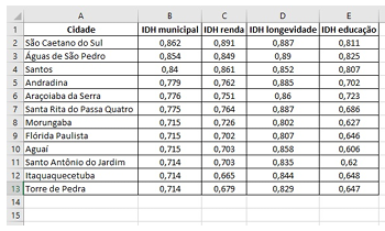 Na célula, B15, caso seja necessário mostrar somente o valor do “IDH municipal” referente à cidade de Aguaí, será necessário digitar a fórmula constante na alternativa: