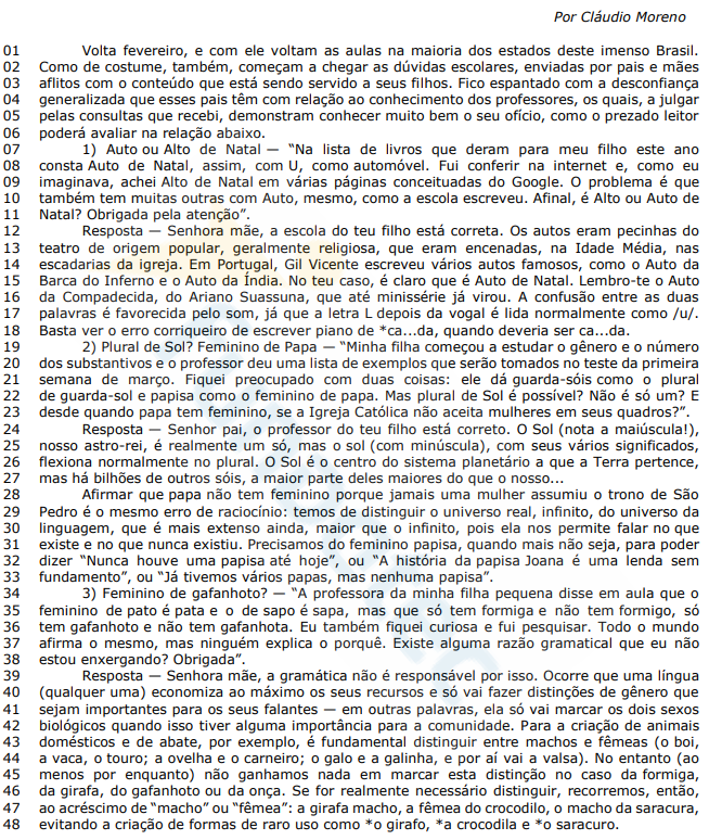 II. A primeira dúvida enviada ao autor apresenta um questionamento acerca de ortografia, e a segunda, de morfologia, abordando tanto a flexão de gênero quanto a de número.
