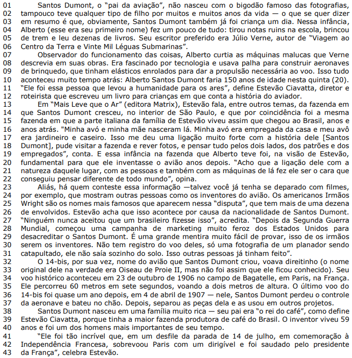 ( ) tirou notas ruins na escola, brincou de trem e leu dezenas de livros (l.04-05).