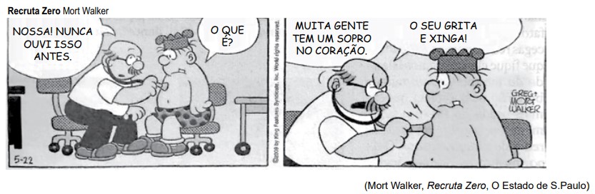 Com base nesse contexto, é correto afirmar que o efeito de humor da tira apresentada deve-se, principalmente, ao fato de o