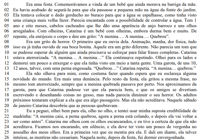 No início do texto, a autora nos revela uma grande descoberta que impacta sua afilhada. Entre os recursos utilizados para expressar a surpresa da menina com sua descoberta, pode ser apontado (a):