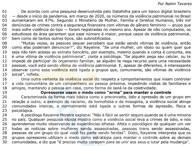 No subtítulo “Opressores usam o medo como ‘arma’ para manter o controle”, a palavra “arma” está colocada entre aspas para