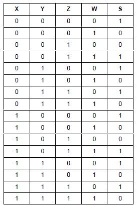 A expressão booleana da saída S, de acordo com a tabela- verdade abaixo é: