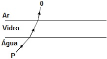 Uma pessoa encontra-se mergulhada em uma piscina cheia de água, cujo índice de refração vale 1,33. Ao aproximar-se da superfície da água, a pessoa não consegue enxergar determinados objetos que estejam imersos no ar, o qual possui índice de refração unitário, devido ao fenômeno da reflexão interna total na interface ar-água.