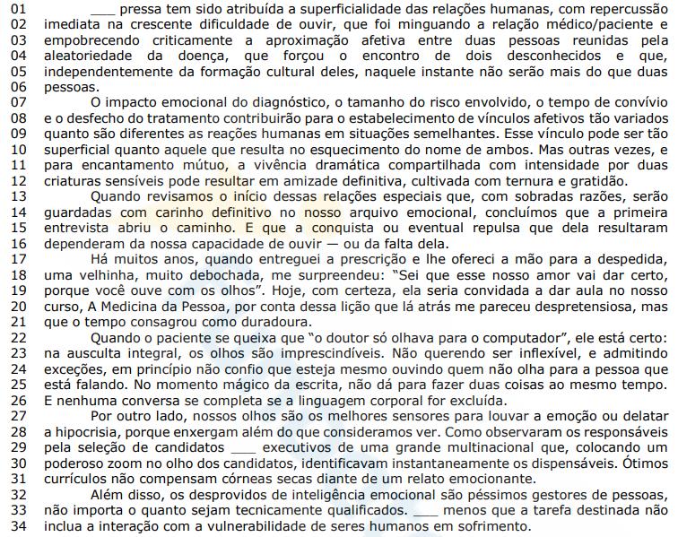 ( ) “os desprovidos de inteligência emocional são péssimos gestores”. ( ) “E que a conquista ou eventual repulsa que dela resultaram”. ( ) “Não querendo ser inflexível”. ( ) “se a linguagem corporal for excluída”.