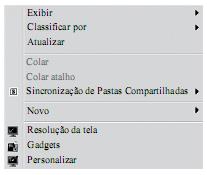 Observe a imagem a seguir, obtida por meio de um clique com o botão direito do mouse (configurado para destros) na área de trabalho do MSWindows 7, em sua configuração padrão.