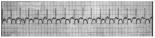 O tratamento de escolha, neste momento, para o paciente com o traçado ilustrado a seguir é: