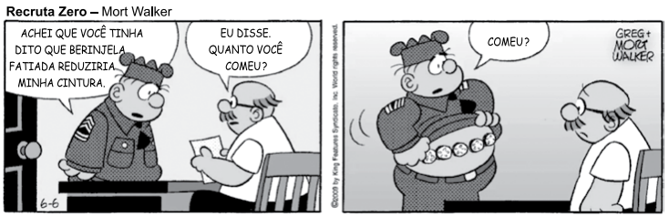 Em relação à fala do primeiro quadro “Achei que você tinha dito que berinjela fatiada reduziria minha cintura.”, a forma verbal que substitui “tinha dito” e o sentido expresso por “reduziria” são, correta e respectivamente: