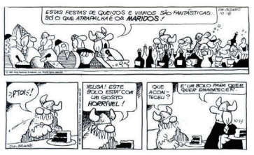No segundo quadrinho, a fala de Hagar consiste em uma onomatopeia, que é o emprego de palavras imitativas que buscam reproduzir aproximadamente certos sons ou ruídos. Diante do exposto, é correto afirmar que a onomatopeia corresponde uma figura de