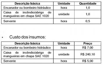 Para se orçar o custo de fornecimento e instalação de uma caixa de incêndio, os seguintes dados foram coletados: