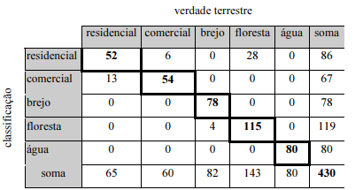 A exatidão geral da classificação digital de imagens exibida na matriz de erros é superior a 85%.