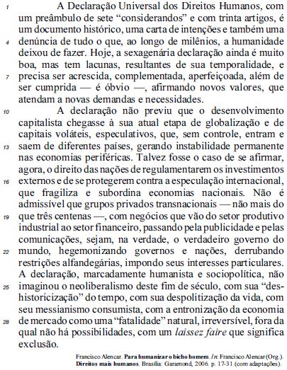 O texto comenta a situação do país, refutando, em sua análise, pressupostos - em sua maioria, inscritos, no texto, por meio de pares opositivos - acerca do caráter do povo brasileiro.