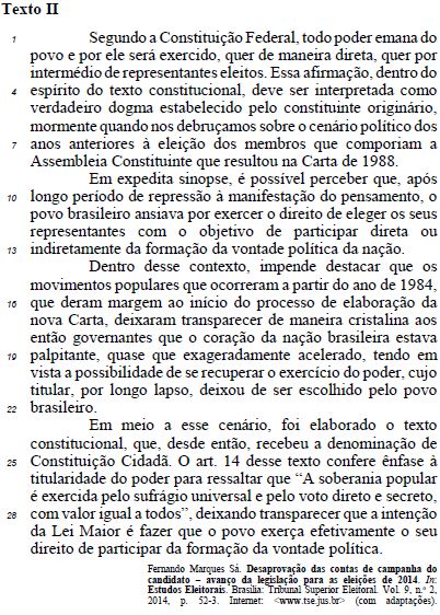 Julgue o item que se segue, acerca das estruturas linguísticas do texto I.