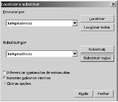 Decidiu-se usar o recurso “Localizar e substituir” para a correção da acentuação da palavra jurisprudência. Para