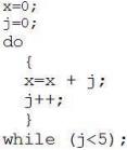 Após a execução completa do laço, é correto afirmar que os valores das variáveis x e j, respectivamente, serão