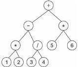 Percorrendo a árvore binária abaixo em pós-ordem, obtém-se o seguinte resultado: 1 * 2 – 3 / 4 + 5 * 6.