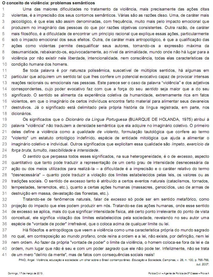 Ao citar a definição de “violência”, presente no Dicionário da Língua Portuguesa (linhas 19-24), o autor estabelece entre seu texto e o referido dicionário uma relação