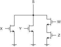 Na figura, é apresentado o circuito de uma porta lógica digital CMOS complementar, onde a rede abaixadora (pull-down) está faltando.