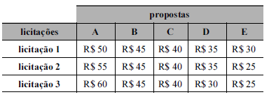 A tabela seguinte mostra propostas de preços para obras e serviços de engenharia.