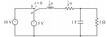 Considere que a chave do circuito ilustrado na figura precedente tenha permanecido na posição a por muito tempo e que, subitamente, tenha mudado para a posição b, conforme ilustrado. A partir dessas informações, assinale a opção correta.