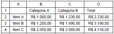 Considere a planilha abaixo, criada no Microsoft Excel 2010, em português.