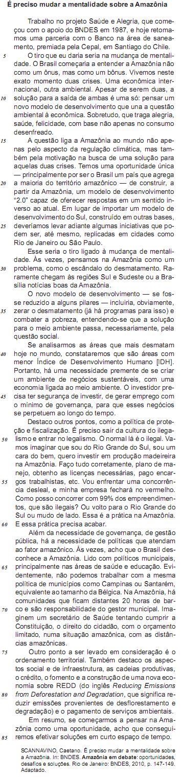 O texto busca refletir acerca de um novo modelo de desenvolvimento.