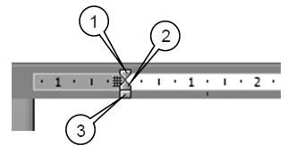 Após selecionar o parágrafo de texto que se deseja formatar, para formatar o parágrafo com recuo à esquerda, recuo da primeira linha e recuo deslocado, o usuário deve movimentar os marcadores indicados respectivamente pelos números