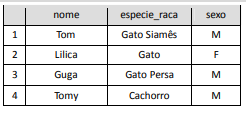 select nome, especie_raca, sexo