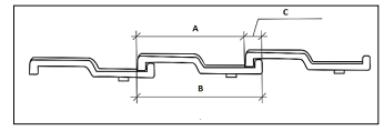 Trata-se de uma vista esquemática da largura de fabricação de telhas cerâmicas, em que as letras A, B e C são, respectivamente: