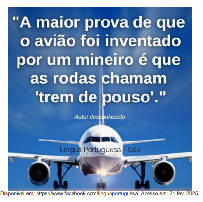III- O termo “trem” está presente na fala dos habitantes de Minas Gerais substituindo vários outros nomes, e, no texto, foi usado para se referir à palavra “avião”.