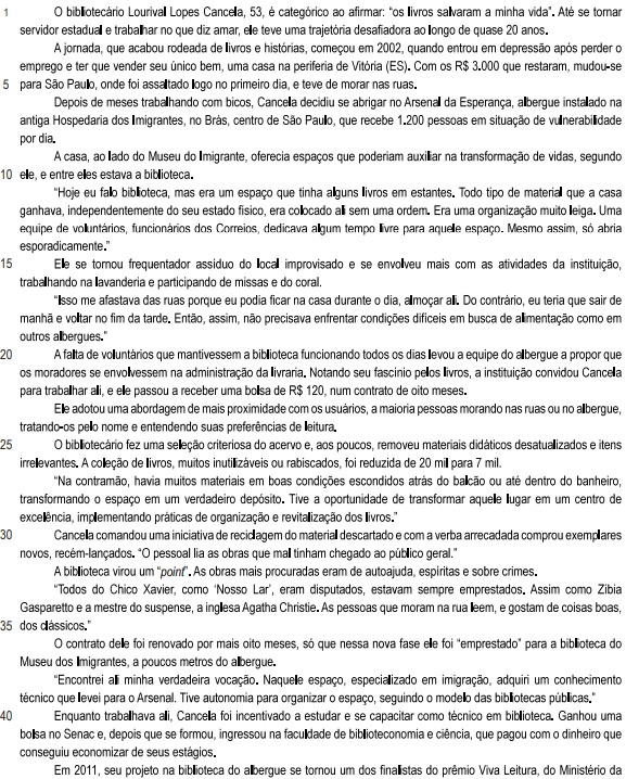 Considerando a segunda ocorrência de virgula no fragmento “Notando seu fascínio pelos livros, a instituição convidou Cancela para trabalhar ali, e ele passou a receber uma bolsa de R$ 120, num contrato de oito meses”, pode-se afirmar que ela se Justifica pela mesma regra que levou ao emprego de virgula na sentença:
