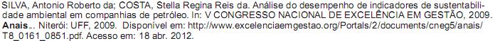 Considerando-se a NBR 6023, da ABNT, qual a referência correta para trabalho apresentado em evento e disponível na internet?