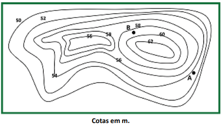 Sendo a cota do ponto A definida como HA e a cota do ponto B definida como HB e sabendo que a distância em linha reta entre os dois pontos é de 1 km, qual é a inclinação entre os dois pontos, aproximadamente?